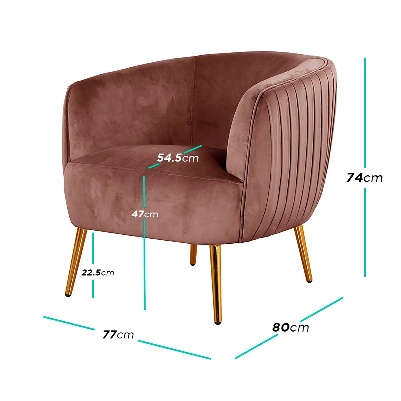 Evelyn Curved Velvet Sofa Accent Chair in Blush